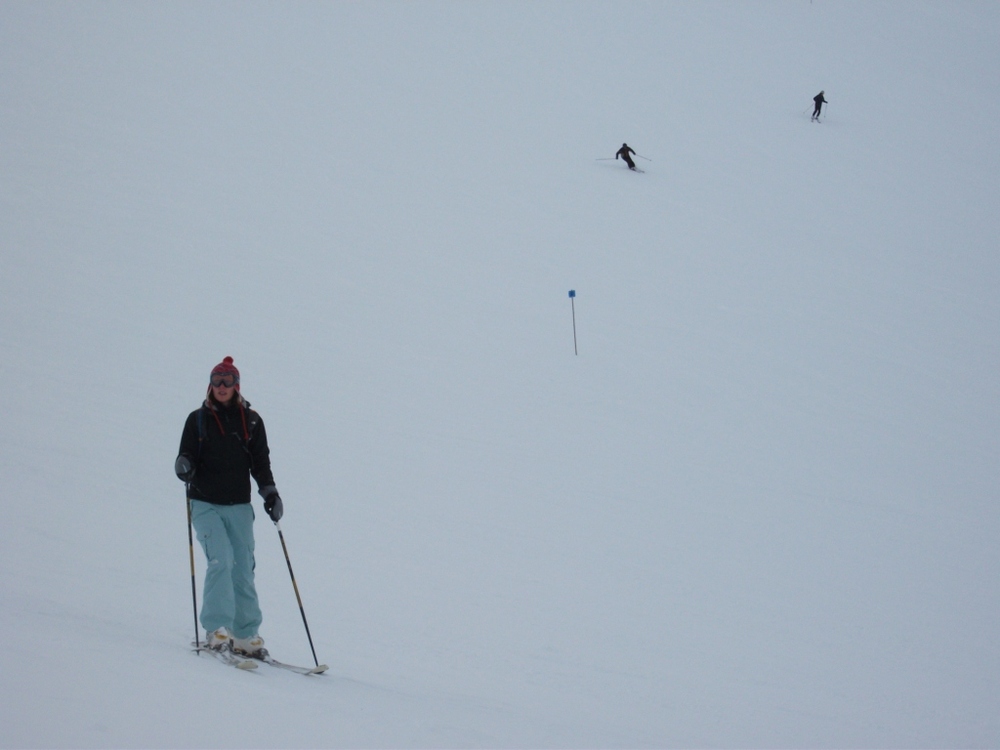 Symphony Amphitheatre represents an attempt to introduce greater environmental sensitivity to the development of a ski area; the limitations to the number of visitors as a result of the way that lifts are set up, plus a more nuanced approach to developing pistes by thinning trees for glades skiing, rather than clearcutting vast tracts of forest, makes for a distinctly different skiing experience. We spent a couple of hours riding the lift to the head of the pistes, and taking different routes down each time; at one point Dave ended boarding into a creek, while my favourite run was "Jeff's Ode to Joy", which splits into 6 narrow chutes through trees to reach the base; it provided a great chance to split away and hare through the trees, whooping and waving.