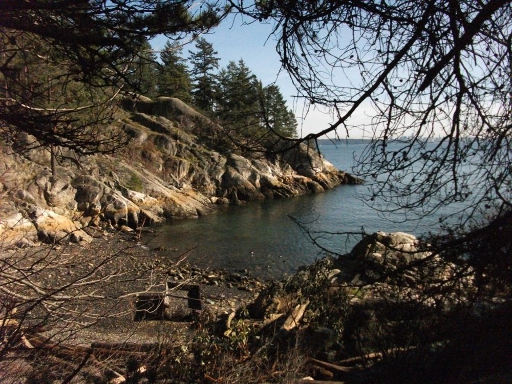 I ambled on to the West Beach, which looks out over a slabby foreshore to the Howe Sound. I watched as something swam towards the cove, before diving and disappearing – an otter? I certainly thought so but my view of it was so quick, I got nowhere close with the camera.