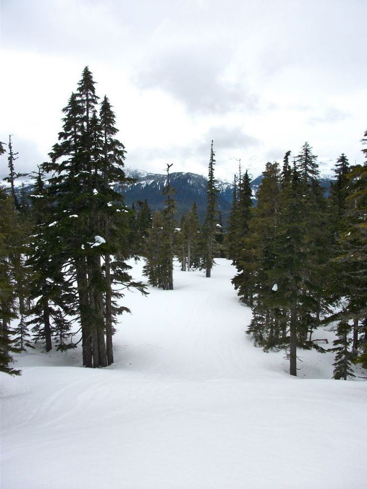 I think this is the view down a little-used black route called "Schum's Delight" which we spotted from the chairlift. It proved interesting fun but we hit it at exactly the right time, as the sun melted the crispy powder coating.