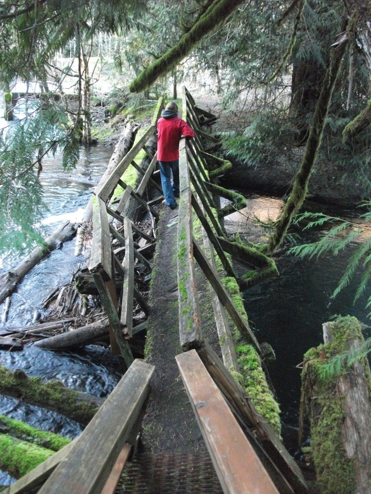 Staying in the sphere is an experience in itself, but we also did our best to explore the area in which it is located. Tom provided us with a hand-drawn map and we made the most of the afternoon sunshine on our first day to walk out to Big Qualicum River, through some spectacular old growth forest, across a rickety bridge, and back along an island mid-stream, where we were surrounded by evidence of beavers. At first glance, the fish skeletons scattered around were a bit unnerving, but once we found a youngish tree, felled by teethmarks, with its smaller branches removed, it all became clear (though we didn't spot a lodge, or any beavers themselves). The area was beautiful, despite not being exactly remote, and it really whetted my appetite for further exploration of the parks and forests of the island.