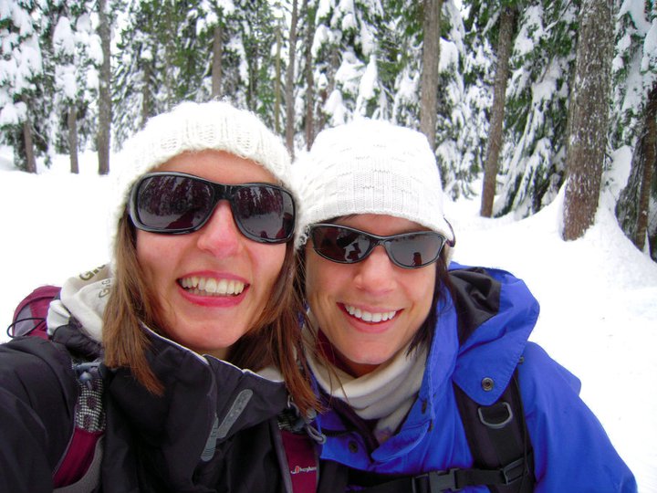 My partner in crime, ninja snowshoer Rebecca and I simultaneously remain upright on cross country skis!