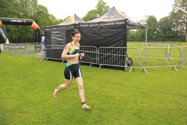 The hail had just about stopped hammering off my helmet as I turned a corner and found myself on the home strait. The appearance of my mum, Dave and Steph’s friend Lorna made for a great moment as they enthusiastically cheered me (and all the other competitors) back into transition. It was at moments like these that I felt properly sheepish. Why are they standing in the early morning wind and rain, watching me do things at which I’m not particularly good?!